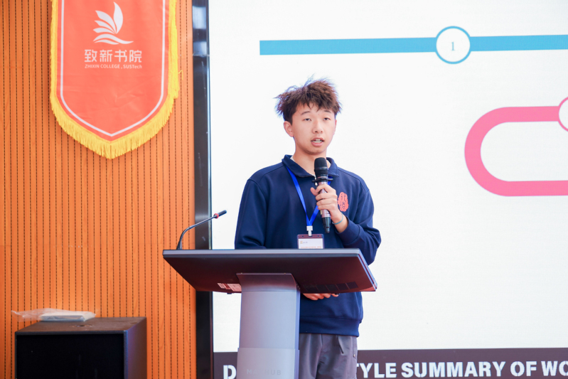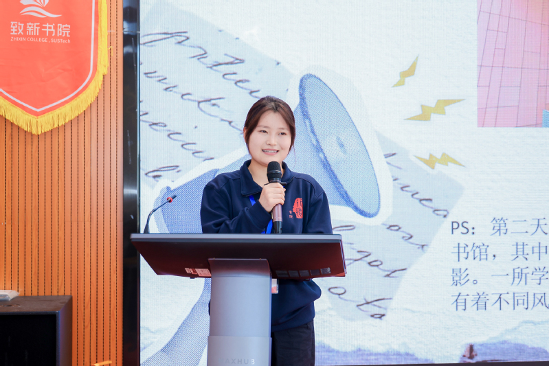 来自中国海洋大学行远书院、东南大学健雄书院和南方科技大学致新书院的8位同学分别对交流活动进行总结汇报。其中,行远书院十一期生张天露、十期生阮思雷作为小队代表发言,十一期生李佳奕作为书院代表进行报告分享。